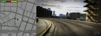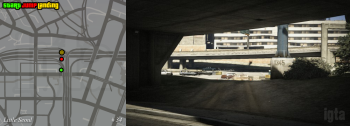 VinewoodFrom the starting position, shoot across the intersection and thru the left path that leads upwards. There's a portion of the guardrail convienently missing so use that opening to reach the road beneath.