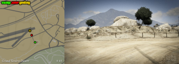 Grand Senora DesertGo to the starting point. There should be a nice selection of off-road vehicles. The objective here is to jump over the giant rock and land on the runway.