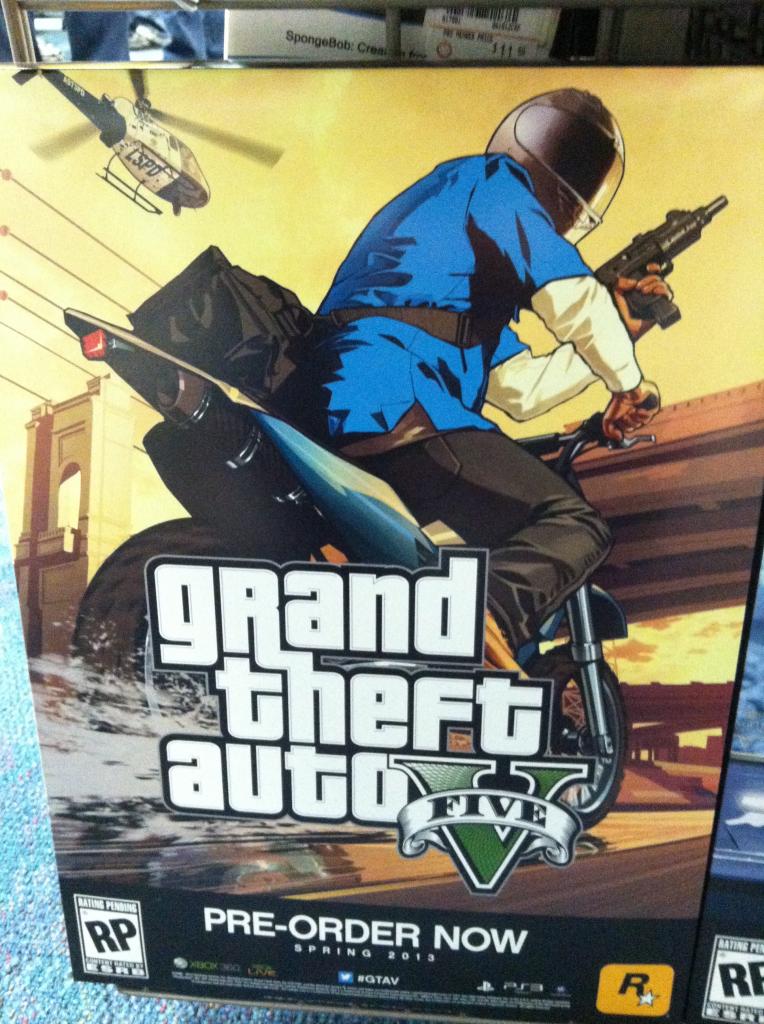 With the box art reveal looming around the corner, it's no surprise that more artworks are being found at retailers. GTA Forums member FRA1Z3R was the lucky fan to find a brand new artwork on promotional boxes at his local GameStop showing what appears to be Franklin speeding through the flood channel on a motorcycle: