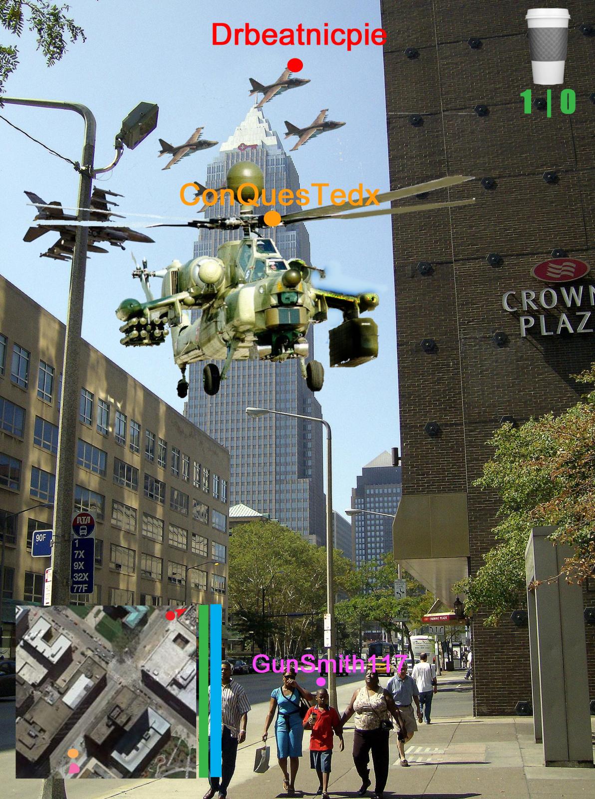Here's a half-hearted, tongue-in-cheek attempt at the multiplayer HUD. Ignore the Cleveland street, pretend it's L.A.
