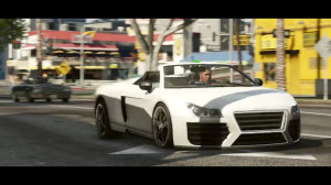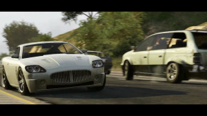 - Blue sports car rides through background (possibly the car resembling a Lotus Elise in a screenshot)