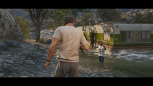 - Trevor looks like he is going to shoot the man in the flood