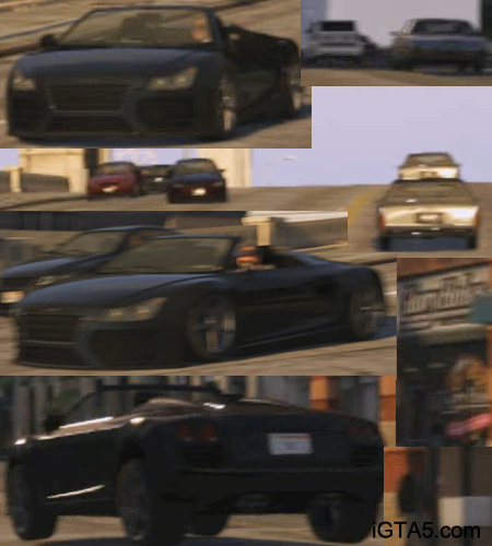 - Red convertible (Similar GTA IV car features: Comet, Super GT, F620) putting top down (car seen later)