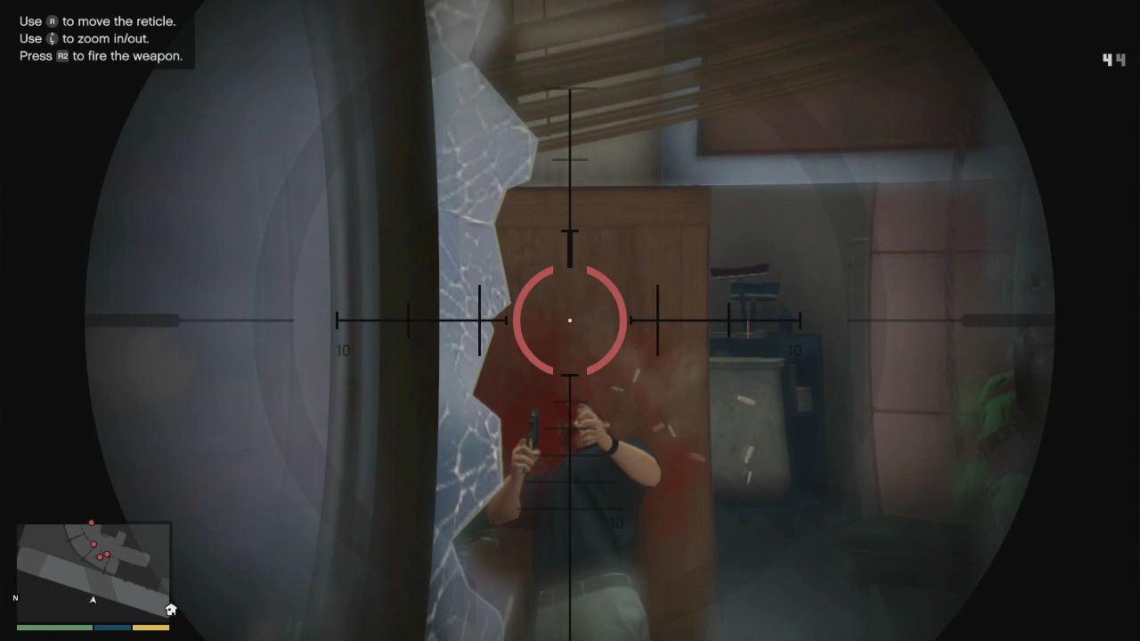 While chasing enemies through a level and taking them out, you are able to examine various scenes which will lead to Max describing what he sees, as seen in previous Max Payne games. This helps to improve your understanding of the story and is also quite interesting. You can and should also check around for painkillers, new weapons and ammo and bonus collectibles such as the Golden Guns. Be aware though, in some missions (such as this one) wasting too much time will cause you to fail. After all, you're supposed to be trying to free Fabiana and Giovanna from the kidnappers before they escape.