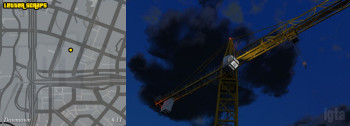 DowntownThis one is on top of the yellow crane at the construction site. Climb this extremely long set of ladders all the way to the top and use the last ladder to reach the very top. There are other ways to reach it if you're creative, but the giant ladder is guaranteed to work.