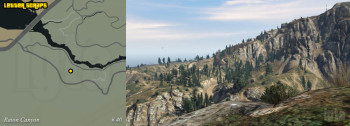 Raton CanyonGet a Helicopter. Land on top of the Rock formation. It's on the Nothern tip.