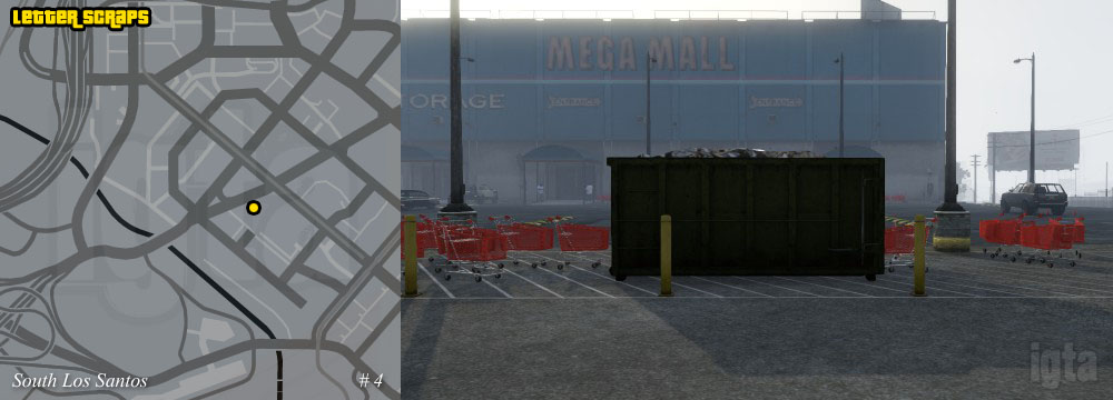 South Los SantosOn top of a garbage container at the front of the Mega Mall Parking Lot.