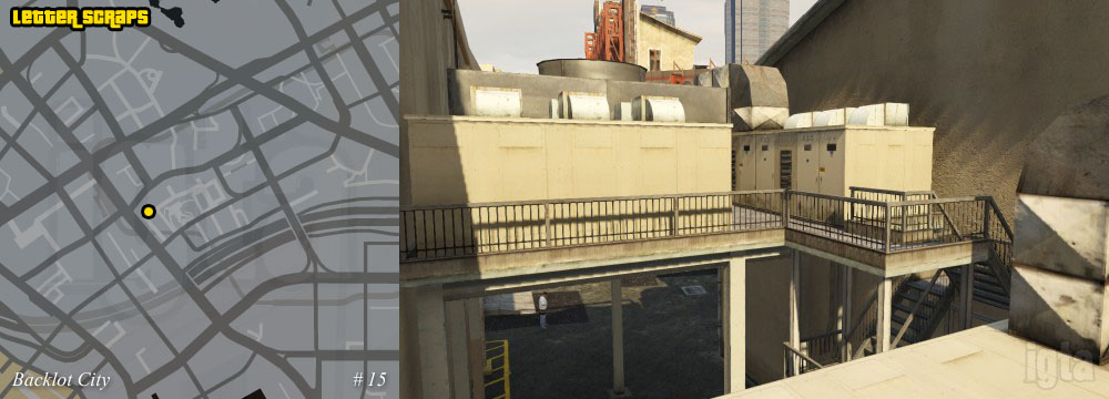 Backlot CityBehind the buildings. Use the set of gray stairs to reach it.