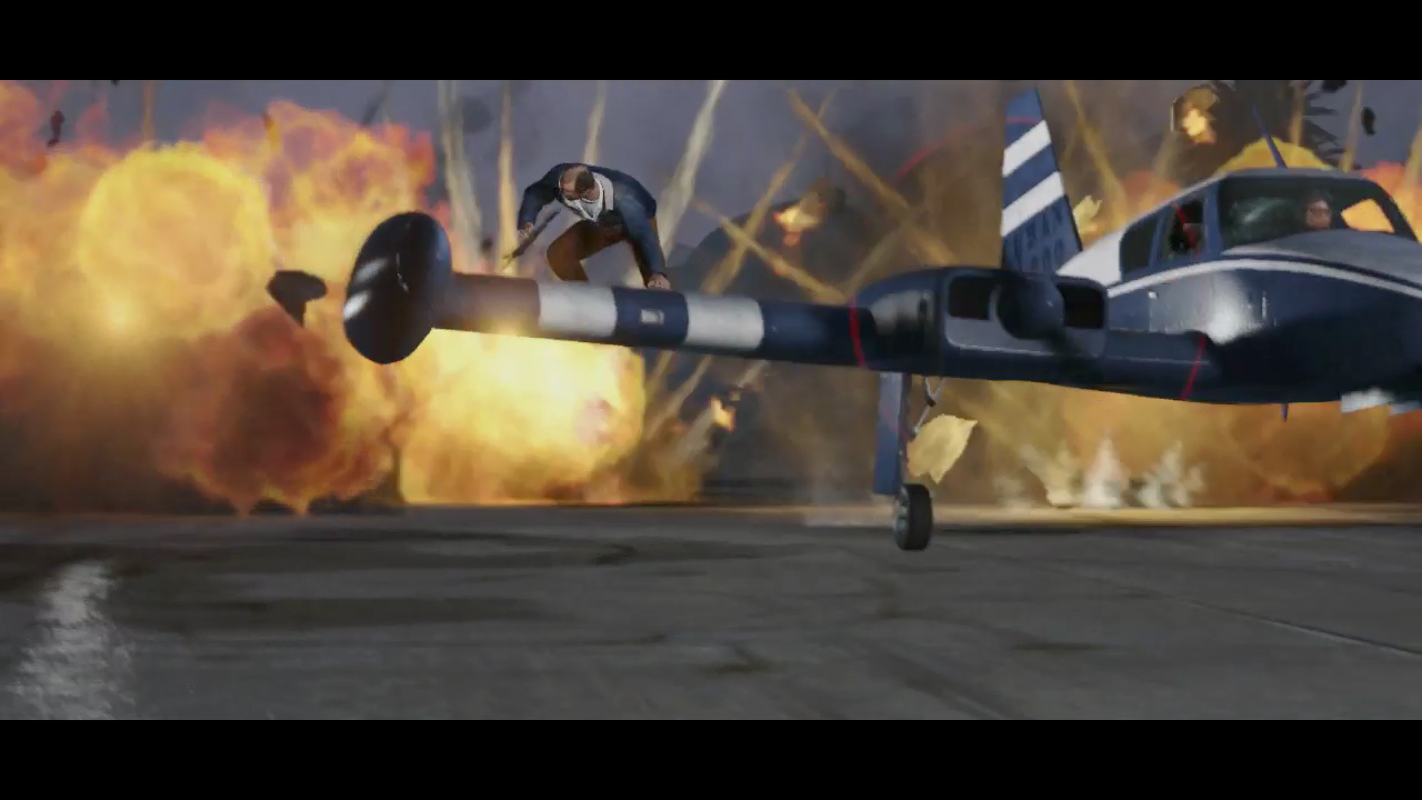 After an unknown person drags Michael away the screen goes dark and flashes colors. Michael then awakens in a back alley surrounded by monkeys. His head is still spinning and he passes out again. A beam of light appears above him and his body rises into a UFO above. Inside the ship aliens examine Michael's body before releasing him from the ship into a freefall. Michael screams with a colorful city below him before leveling out. Music starts and various quotes from the game such as Michael's therapist are heard. Move the camera around and alter Michael's path however you wish. Video filters create quite the show. When you finally hit the ground or a building the screen will go dark again.Michael wakes up in some grass a few blocks from his home. His head is still spinning a little but he still knows Jimmy did it to him. Grab the bicycle nearby or steal a vehicle and go back to Michael's house. Michael's vision will return to normal shortly. Walk inside the house and go to the kitchen. Michael finds a note on the counter from his wife. Long story short she and the kids have moved out for a while. Michael crumples the note. Later Michael is found sitting on his door step with a new set of clothes.