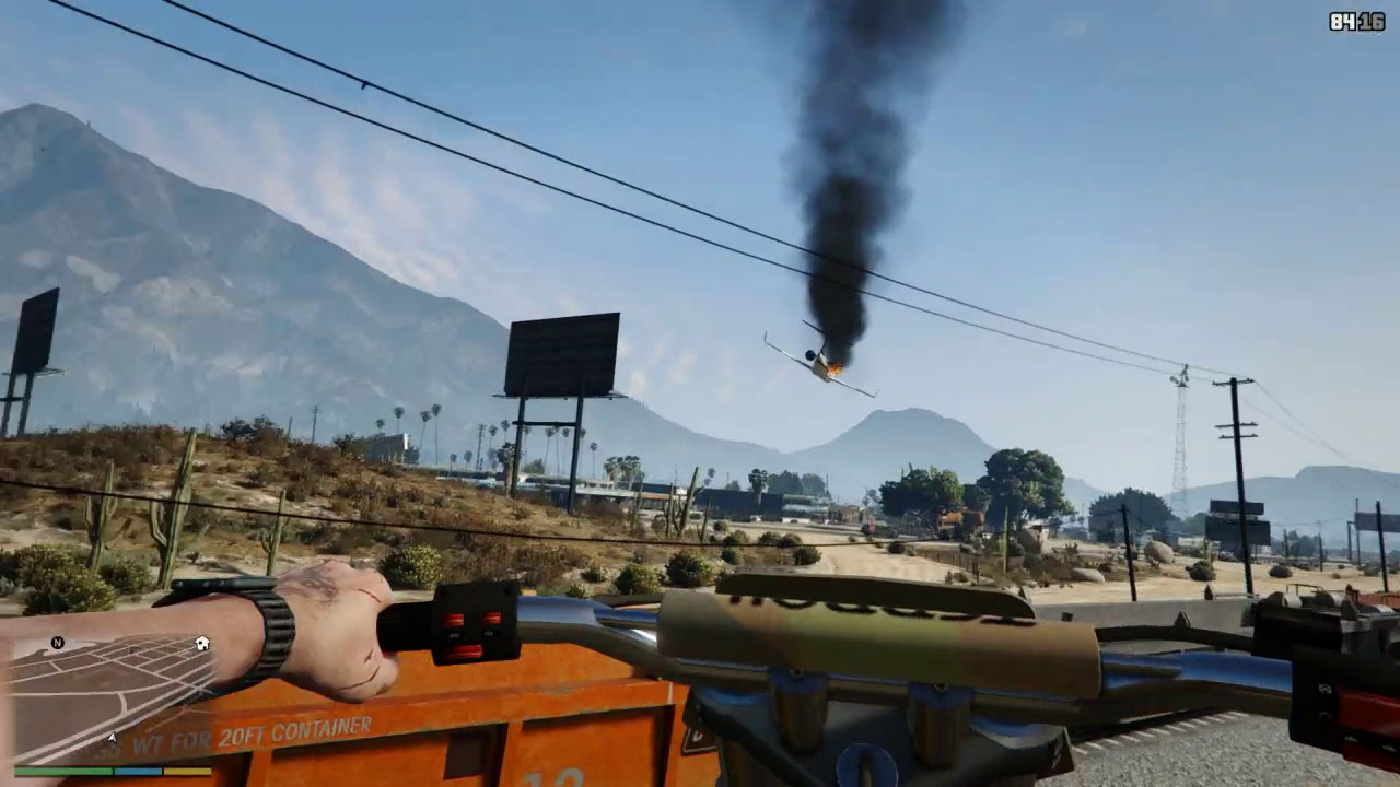 Race the two cars. They'll start out on the wrong side of the highway before switching sides and maneuvering around traffic including between trucks and buses. Use Franklin's special ability to safely navigate through the tight squeezes and quick lane changes. When you get out in Grapeseed Franklin calls Michael to let him know they are coming. Michael and Trevor - looking awesome in their Highway Patrol outfits - get on their Police Bikes and take off as the cars zip by.