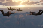 The SUV flies across the next set of railroad tracks but gets clipped by the train. The SUV spins and hits a pole. With the getaway vehicle disabled the crew is forced to continue to the helicopter on foot. While approaching a few farm buildings a sniper shoots "B". "T" takes cover and yells that someone went to the Feds. "M" stands over "B" - revealed to be named Brad - saying that he'll be fine but ends up getting shot as well.