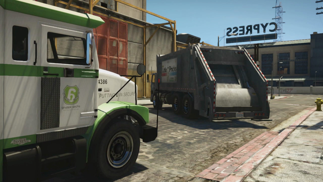 Drive to Pier 400 in the port. During the drive Trevor presses Floyd about what kinds of things they could steal around the docks. Eventually Floyd mentions that Merryweather has been guarding a freighter and also has men at a navy warehouse. They are supposedly testing something. Trevor is intrigued. When you reach the pier continue through the gate and park next to dispatch. The three exit Trevor's truck. Wade gets roped into cleaning a messy bathroom. Follow Floyd out onto the pier. Trevor asks about various ways to get the cargo out but Floyd says the airspace is restricted and the coast guard is quick. They spot the freighter. Floyd says government stuff usually moves quick but this stuff hasn't.