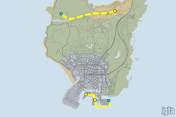 When you arrive at the airfield Floyd will drive up in the truck with the minisub. Get in the chopper with Franklin and fly over the submersible to grab it with the grappling hook. Controls are displayed if needed. When you grab it fly to the test site. Franklin questions all the guns in the helicopter but Trevor says it's a good idea to be prepared. Michael says he doesn't need the attention since he's retired but ends up admitting he robbed Vangelico with Trevor pressing him. When you near the site you'll see two barges. Lower down to the water and drop the sub just past them.
