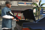 With the box art reveal looming around the corner, it's no surprise that more artworks are being found at retailers. GTA Forums member FRA1Z3R was the lucky fan to find a brand new artwork on promotional boxes at his local GameStop showing what appears to be Franklin speeding through the flood channel on a motorcycle: