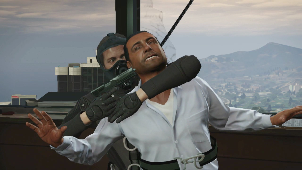 The titleless second trailer was released on November 14th, 2012. It was originally going to be released with little warning on November 2nd - one year after the first trailer. The action-packed second trailer gave insight to the three protagonists and showed how GTA 5 has progressed over the past year. The graphics look better and there are tons of details.