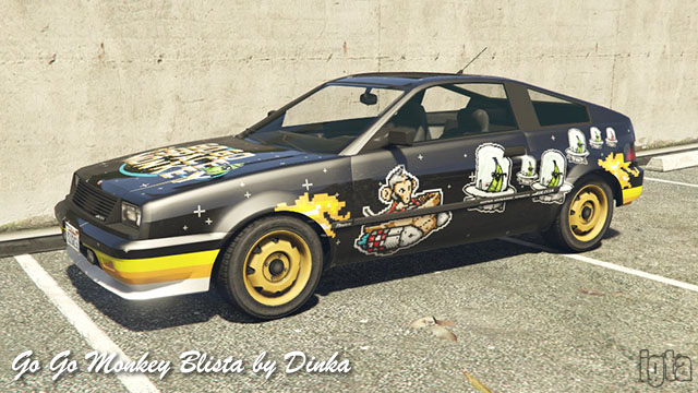 Go Go Monkey Blista (Compact) by DinkaInfluences: Honda CR-XCapacity: 2 Features: Notes: PC/PS4/XB1 returning players. Available after finding all monkey mosaics and completing random event near Burton LS Customs. |