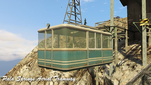Cable CarInfluences: Palm Springs Aerial TramwayCapacity: n/a Features: Notes: Called either Cable Car (map points) or Aerial Tramway (in-game posters) |