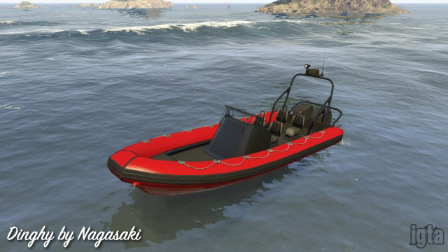 Dinghy by NagasakiInfluences: RHIBCapacity: 2-4 Features: SCUBA gear Notes: With (4 seater) or without radar arch (2 seater), yacht variant (4 seater, Executives, GTAO only) |