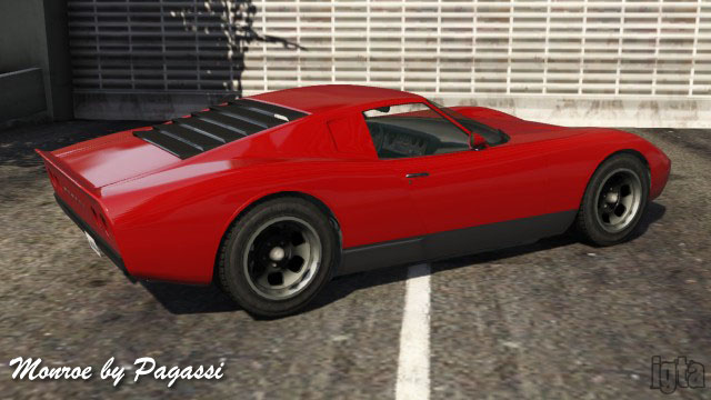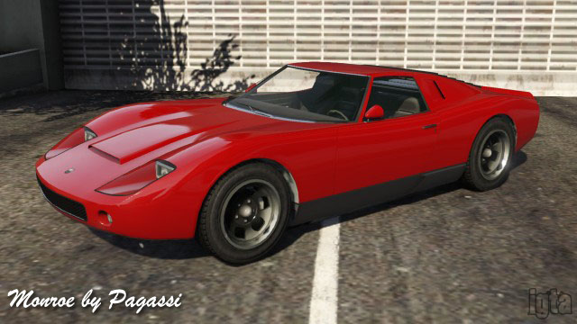 - some random guy 106 (Guest) January 18, 2014The Pegassi Monroe is either a Lamborghini Miura or a Ford GT40 mk I.