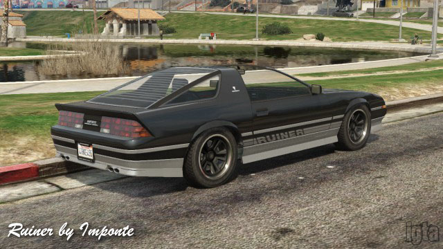Ruiner 2000 by ImponteInfluences: Chevy Camaro, Pontiac Firebird, "KITT"Capacity: 2 Features: Guns and missiles, parachute, power hop Notes: Modified Ruiner. Import/Export Update. GTA Online only. |